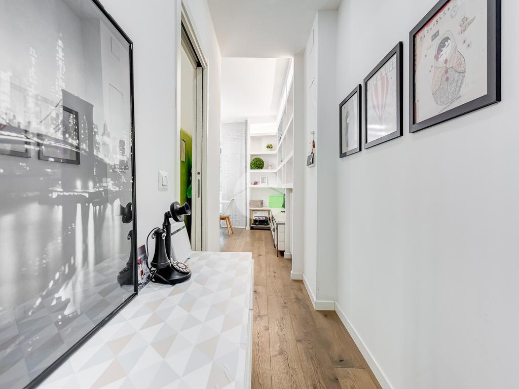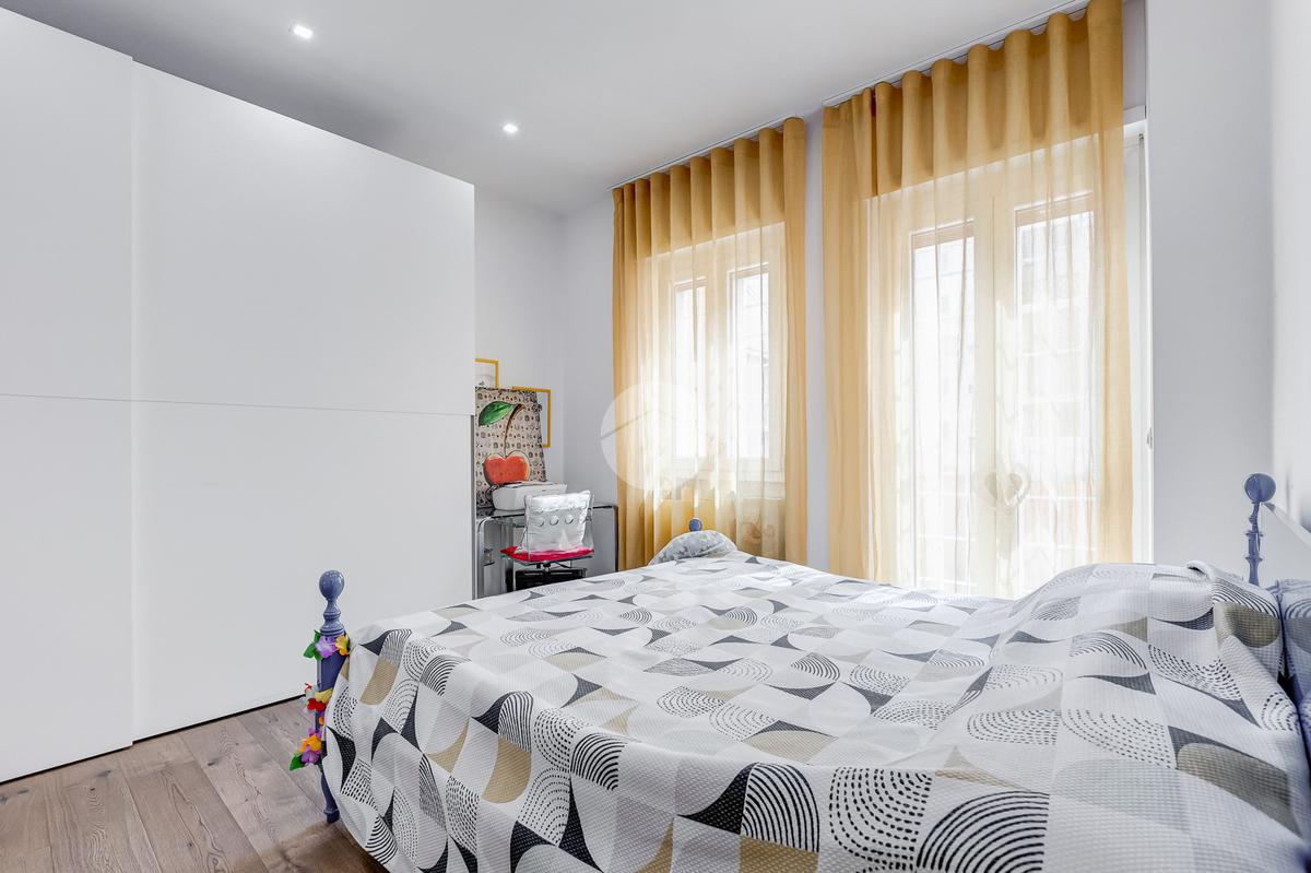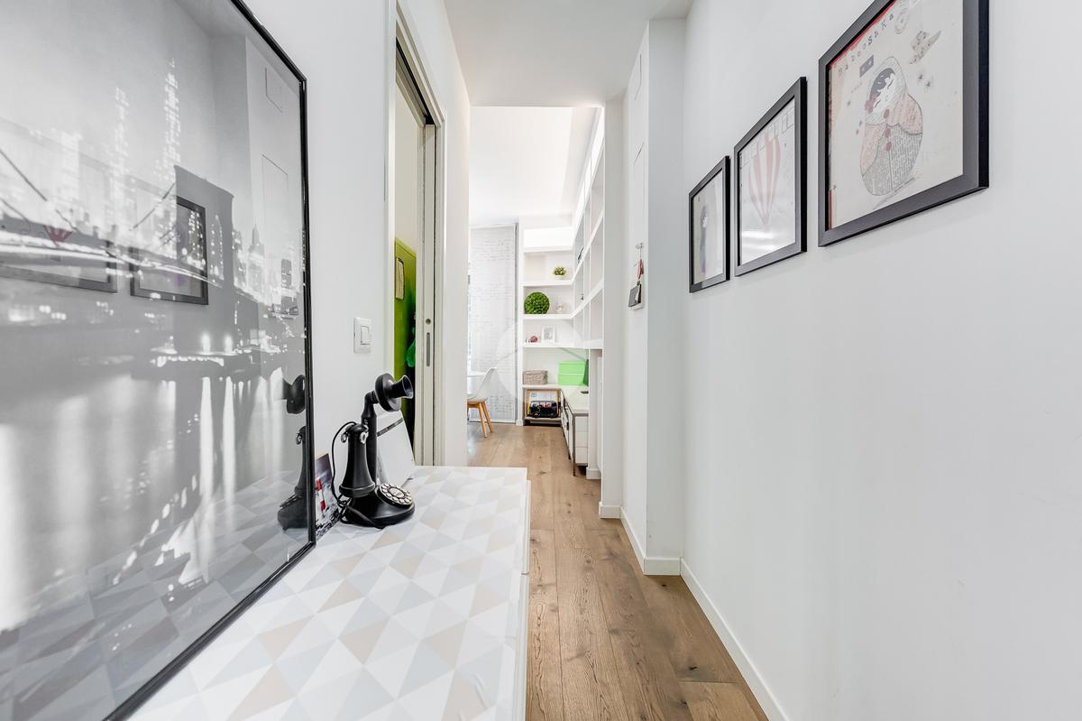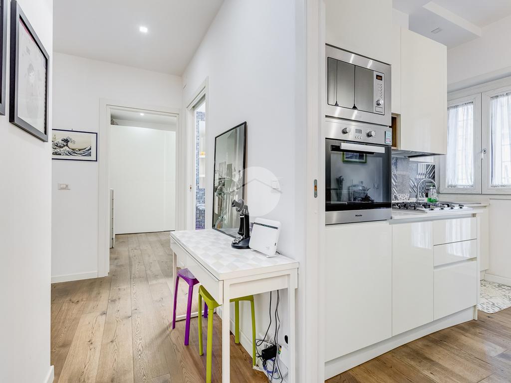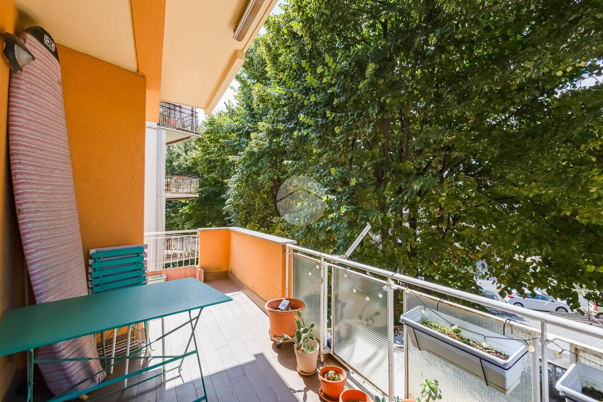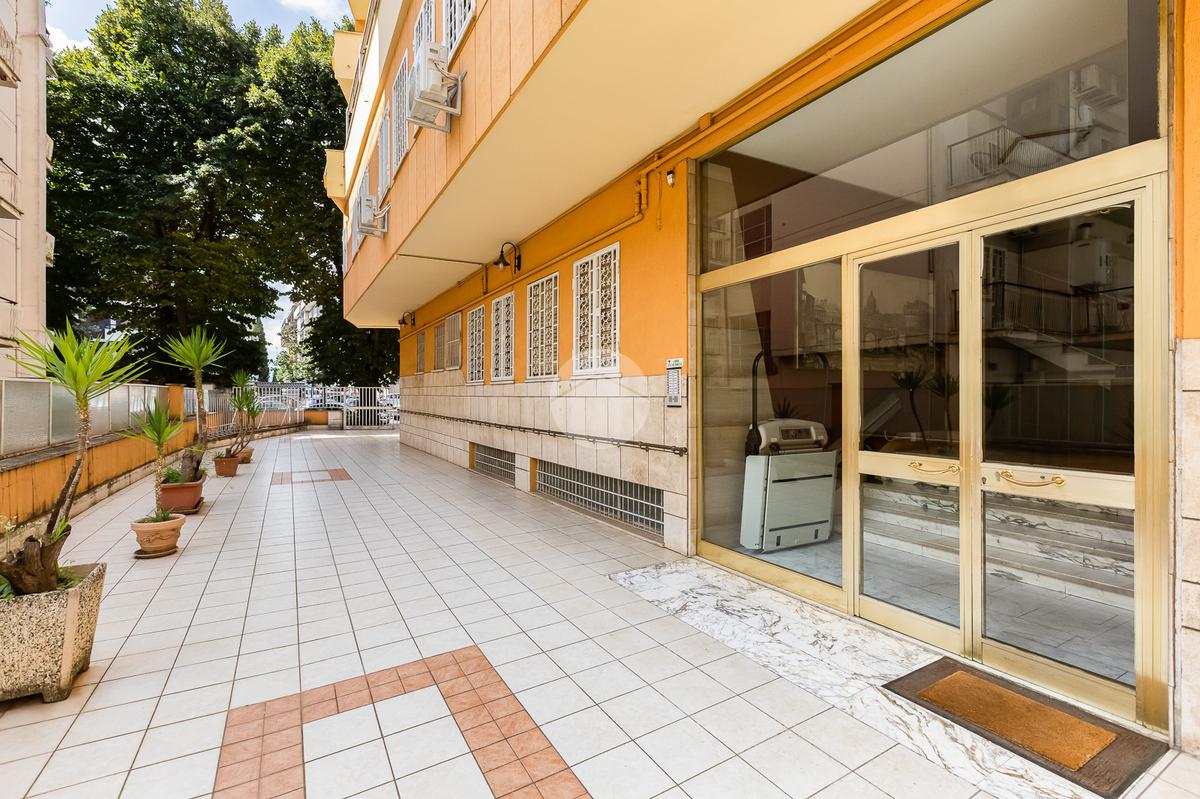 L’ingresso si apre su un corridoio che accompagna al soggiorno, un ambiente accogliente e luminoso con accesso diretto al terrazzo abitabile, dal quale si gode una piacevole vista aperta su Largo Gaetano De Sanctis. La cucina, separata e funzionale, è collegata anch’essa allo spazio esterno, garantendo continuità e praticità. La zona notte è composta da una camera da letto matrimoniale, anch’essa con accesso al balcone perimetrale che abbraccia l’intero appartamento, regalando luminosità a tutti gli ambienti. Completa la proprietà un bagno finestrato, rifinito con materiali moderni.